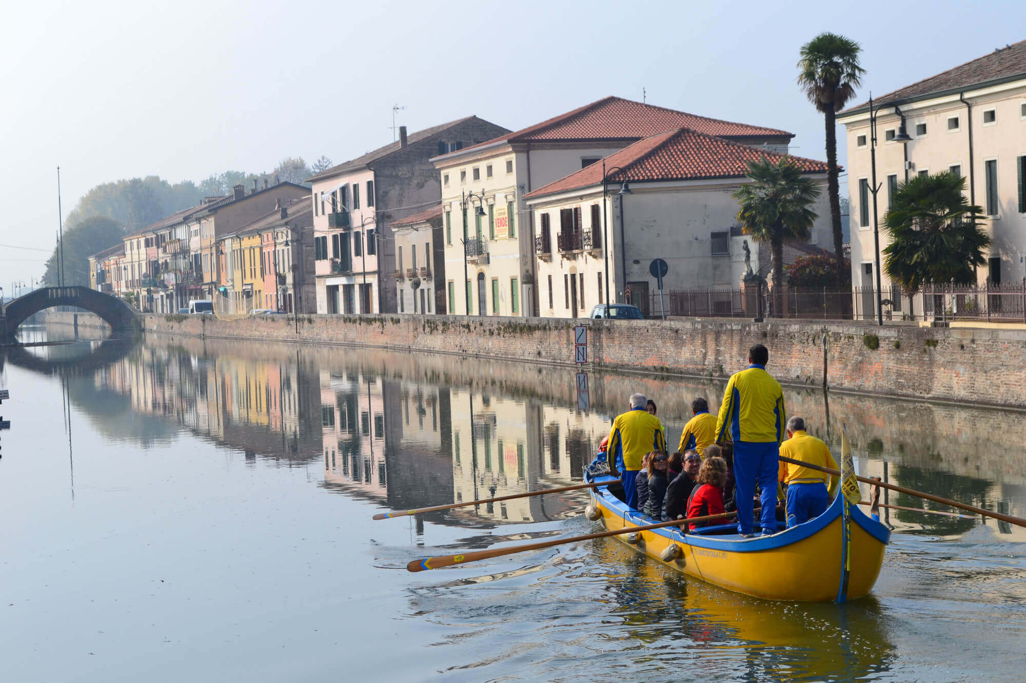 The excursion takes place on board a “caorlina”, traditional Venetian wooden boat brought to oars by rowers of the local rowing club. We will walk along the ancient waterways that in the past were crossed by burches laden with cereals, wine barrels and especially trachite, the euganean stone used by the Venetians for the pavement of the streets and Piazza San Marco.