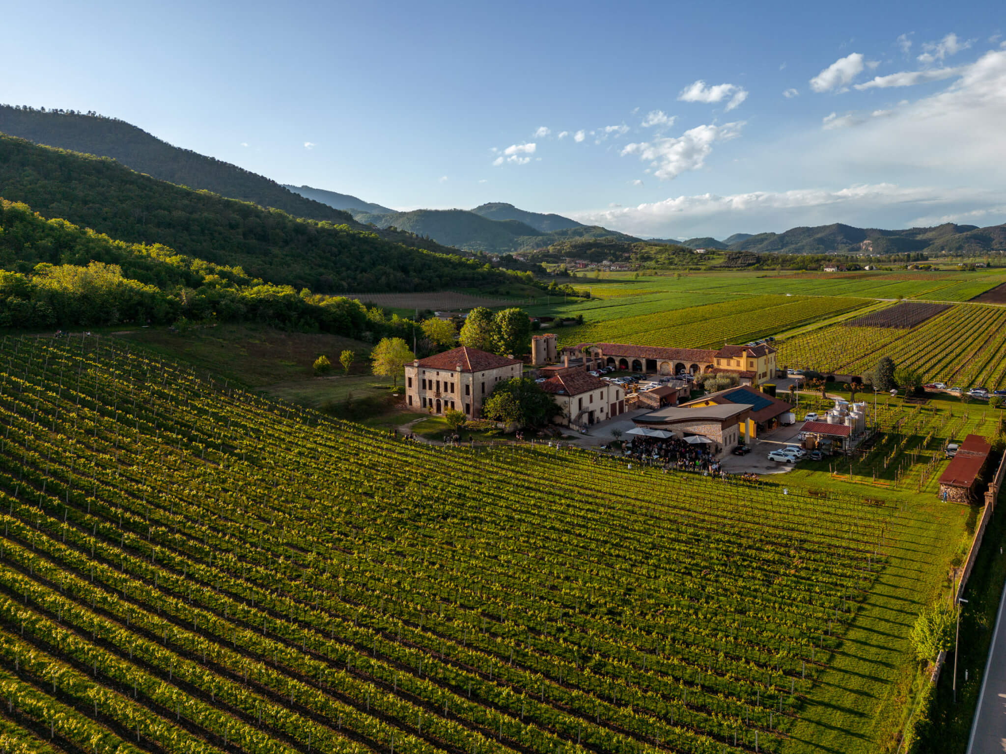 Un arcipelago di isole vulcaniche, dei rilievi separati da fresche vallate, un’idonea esposizione solare ed il rimescolamento tra rocce sedimentarie e vulcaniche sono le peculiarità dei Colli Euganei che donano ai vini vivacità, finezza e piacevolezza gustativa.