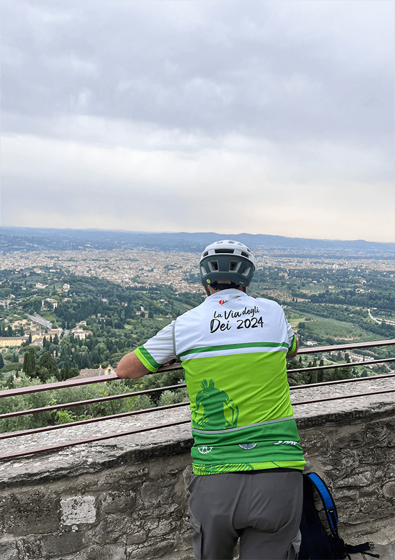 Oggi terzo e ultimo giorno con la tappa più facile del tour. Il paesaggio toscano ci accoglie con le sue amene colline ricoperte di boschi alternati a cipressi e ulivi e ci fa capire che manca ormai poco all’arrivo. Neppure il tempo di rilassarci ed ecco che arrivano le ultime salite che ci consentono appena valicate di goderci la bella discesa verso Fiesole da dove si gode una fantastica vista sulla città di Firenze con le sue magnifiche piazze e monumenti. Conquistata anche Firenze, ebri di fatica e soddisfazione veniamo accolti dal furgone che ci riporterà a Bologna.
